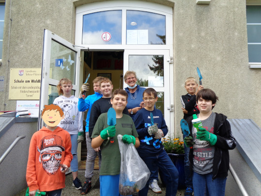 Mathematikunterricht mit Klasse 3 auf dem Schulhof